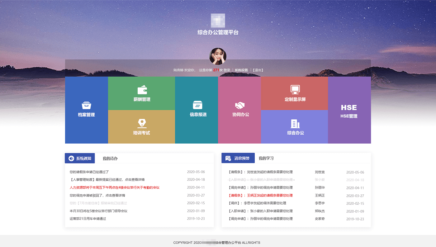 随着企业对协同办公要求的提高,协同办公的定义随之扩展,将其提升到了智能化办公的范畴。 该系统是利用网络、计算机、信息化,而提供给多人沟通、共享、协同一起办公的综合办公平台,给办公人员提供方便、快捷、降低成本,提高效率的一款综合办公平台。